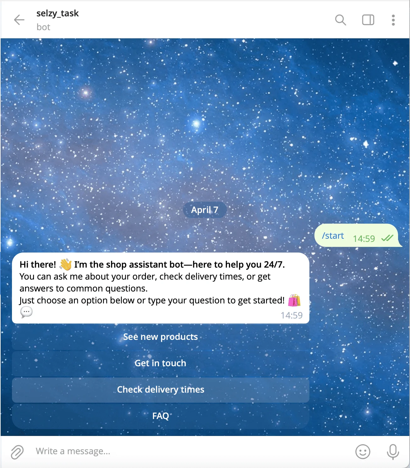 Rich media support. Telegram bots can send pictures and videos and use interactive buttons. This means that you can present information in a clear and visual way, making it easier for users to navigate.