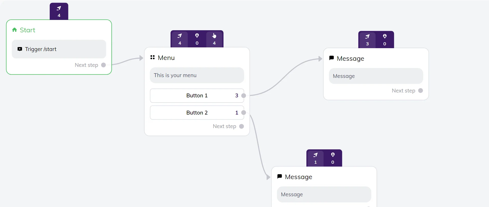 In Selzy’s chatbots dashboard, you can see how many users interacted with your bot, which buttons they clicked and how your flow performed overall. Use this data to improve your chatbot experience.