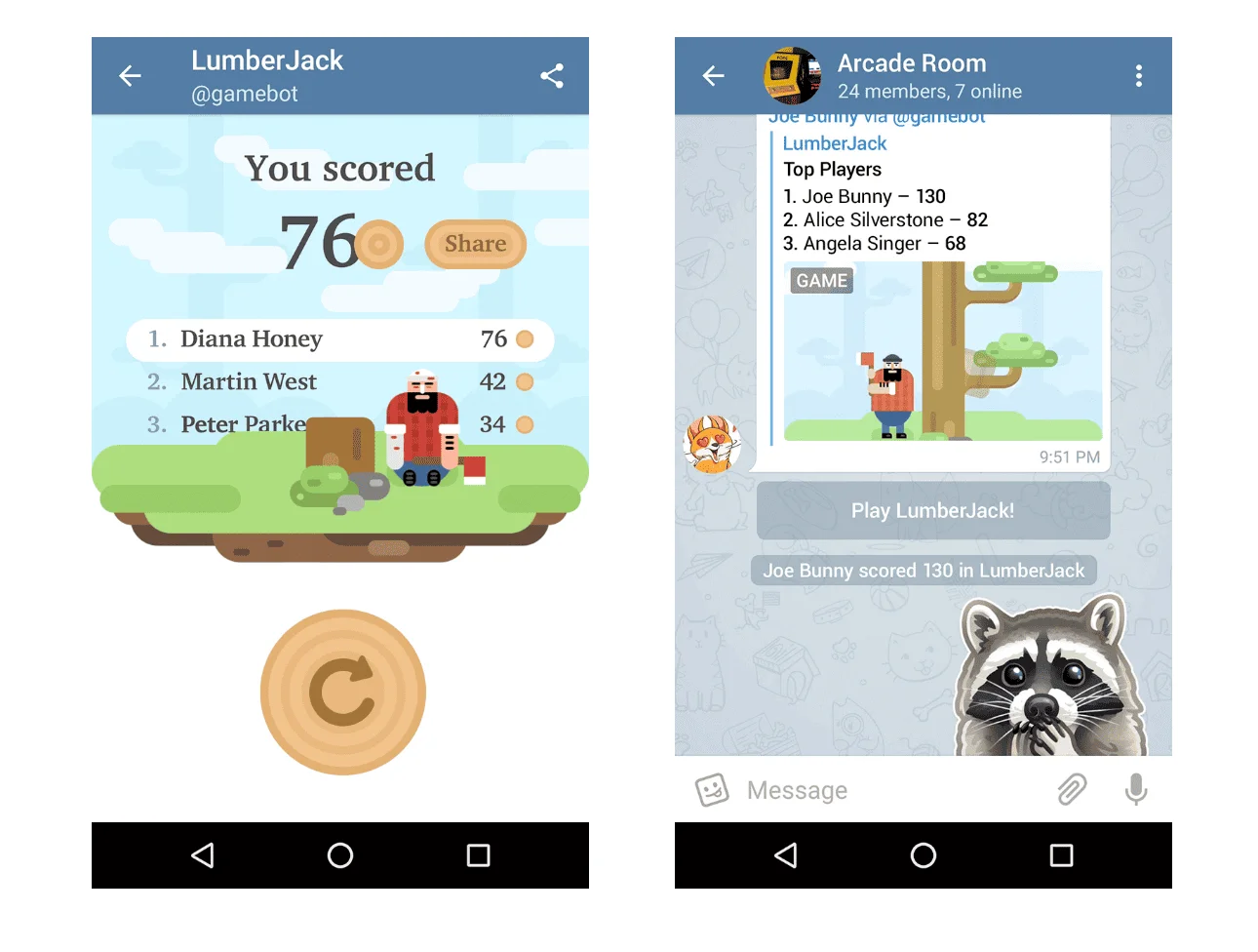 Through its Games API, Telegram supports HTML5 games (also known as web-based games), which run right inside Telegram and can include leaderboards and multiplayer features.