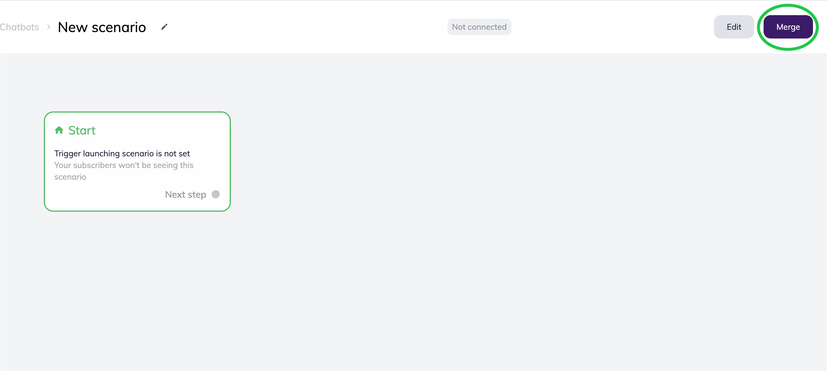 You’ll see the scenario visual builder. Click on Merge.